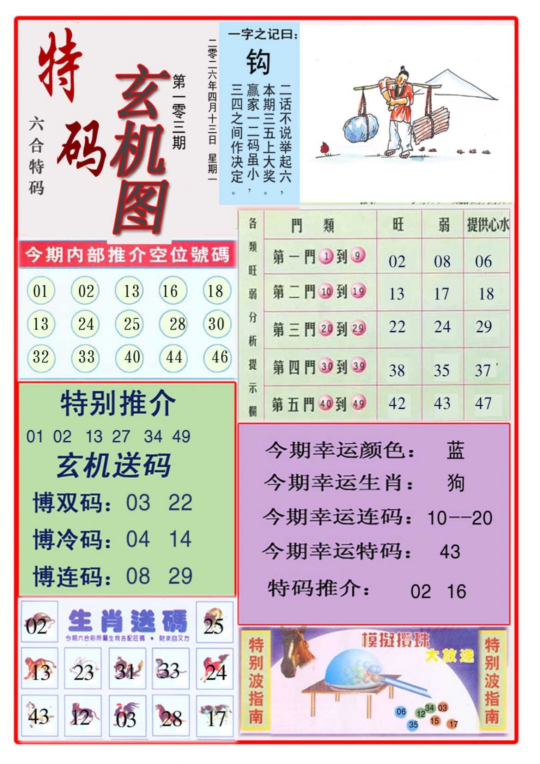 103期: 澳门六合宝典彩圖信封【蓝财神报】每期自动更新