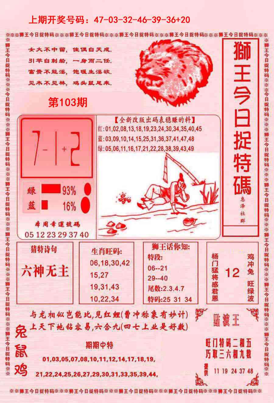 103期: 澳门六合宝典彩圖信封【狮王平特】每期自动更新