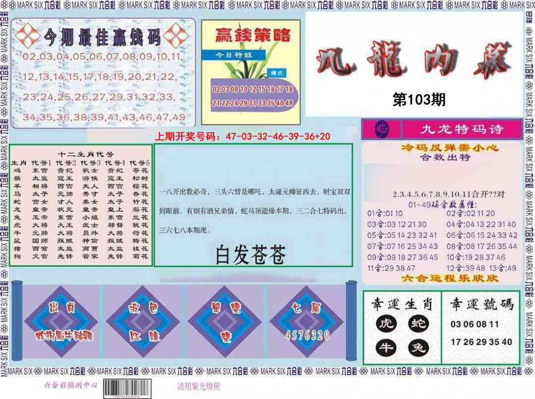 103期: 澳门六合宝典彩圖信封【九龙内幕】每期自动更新